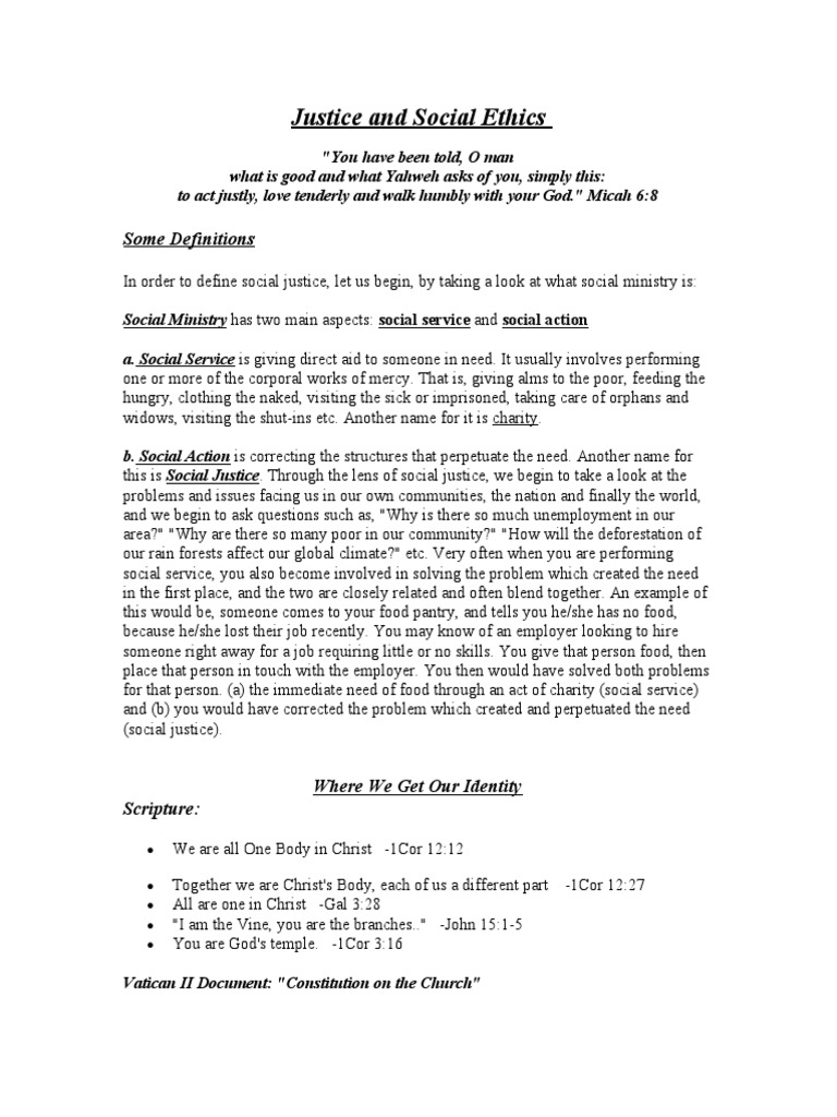In order to define social justice, let us begin, by taking a look at what social ministry is: