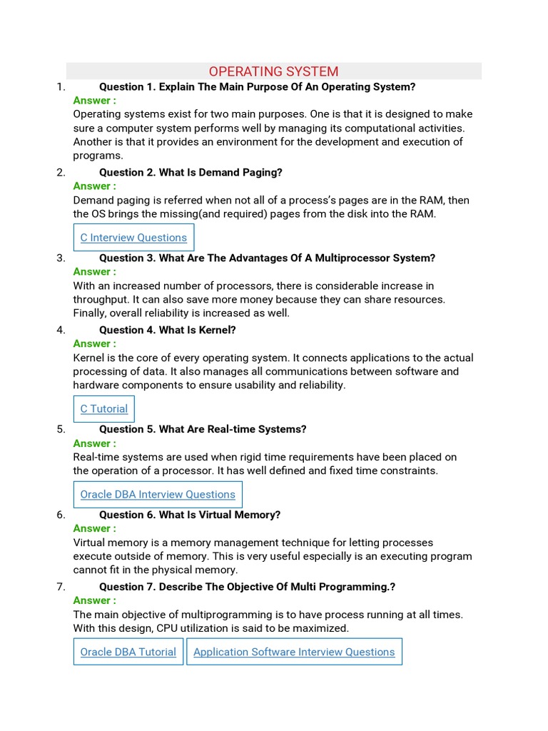 1. Question 1. Explain The Main Purpose Of An Operating System?
