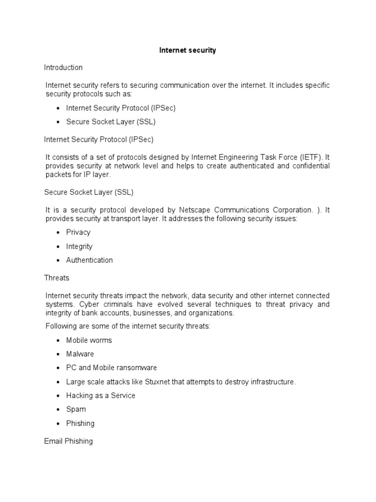 Internet security refers to securing communication over the internet. It includes specific