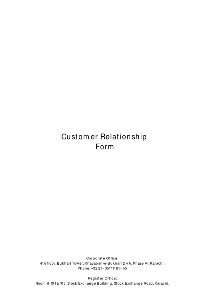 I/We hereby confirm and acknowledge the receipt of duly filled and signed Customer Relationship Form from the following Applicant