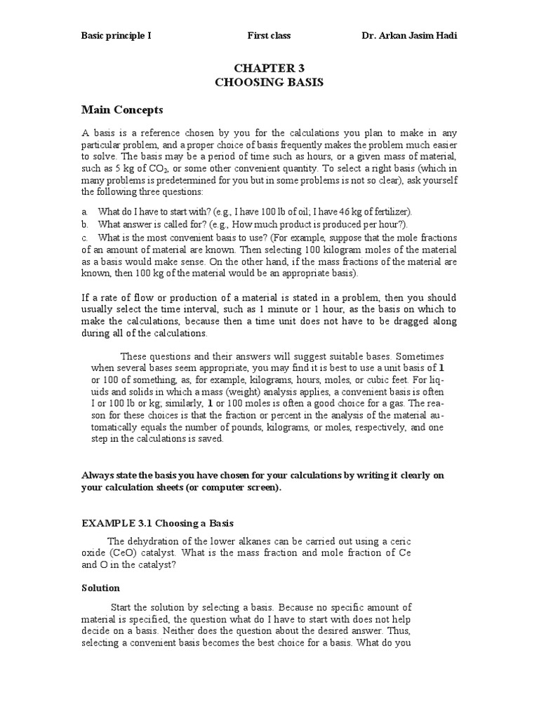 such as 5 kg of CO 2, or some other convenient quantity. To select a right basis (which in