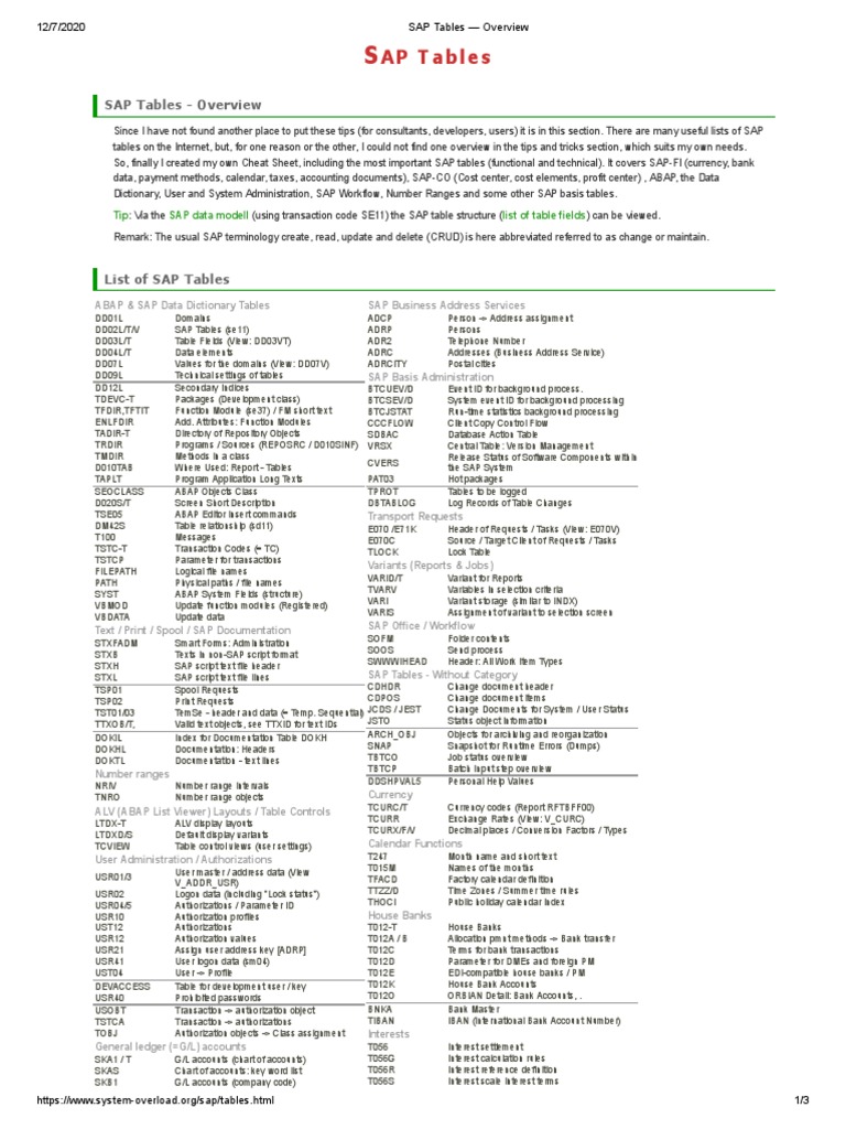 D O W N L O A D SAP T A B L E S C H E A T S H E E T - A S PDF