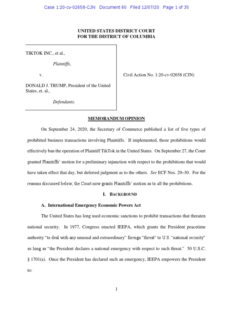 On August 6, 2020, the President identified TikTok—a short-loop video sharing app