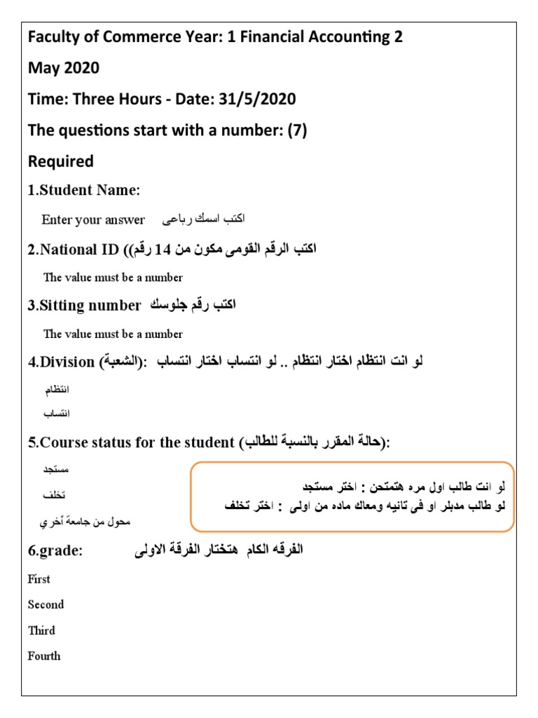 لو انت طالب اول مره هتمتحن :اختر مستجد