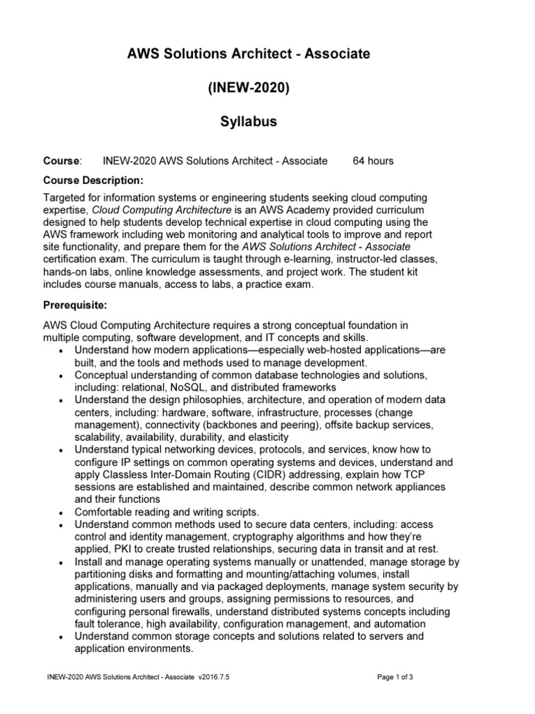 INEW-2020 AWS Solutions Architect - Associate v2016.7.5 Page 1 of 3