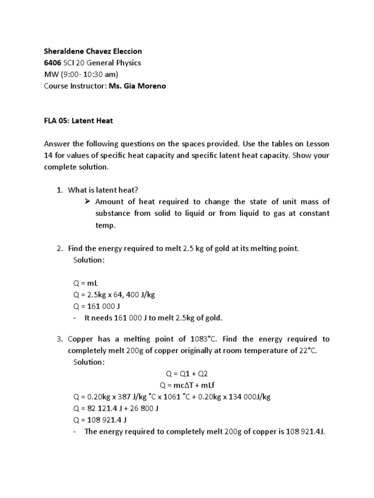 Q = 0.20kg x 387 J/kg ˚C x 1061 ˚C + 0.20kg x 134 000J/kg