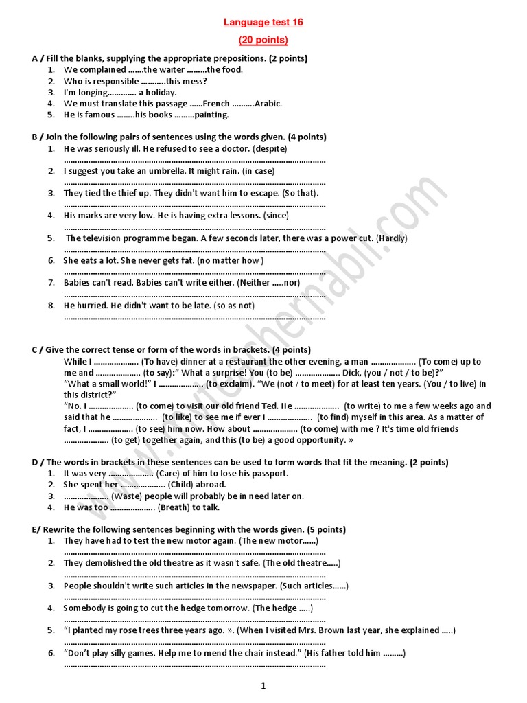 E/ Rewrite the following sentences beginning with the words given. (5 points)