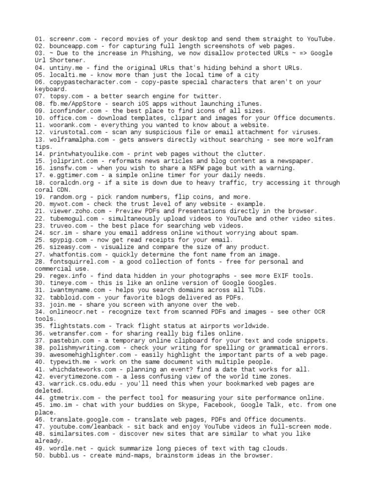 49. wordle.net - quick summarize long pieces of text with tag clouds.