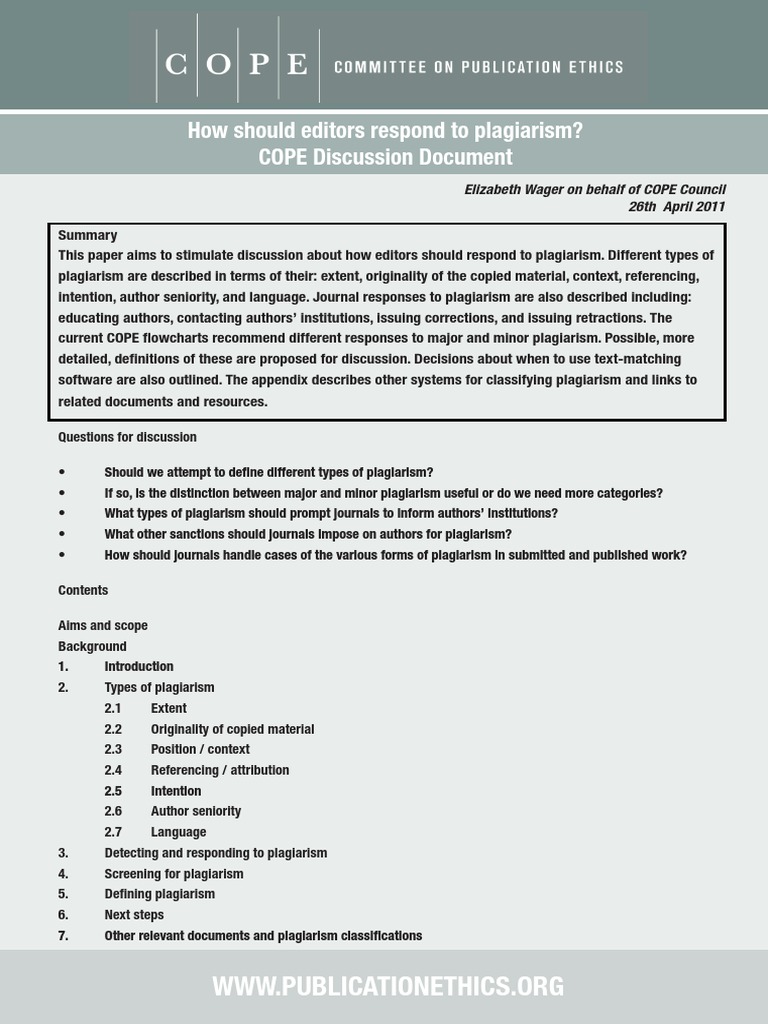 This discussion paper aims to describe different forms of plagiarism to enable editors to discuss the