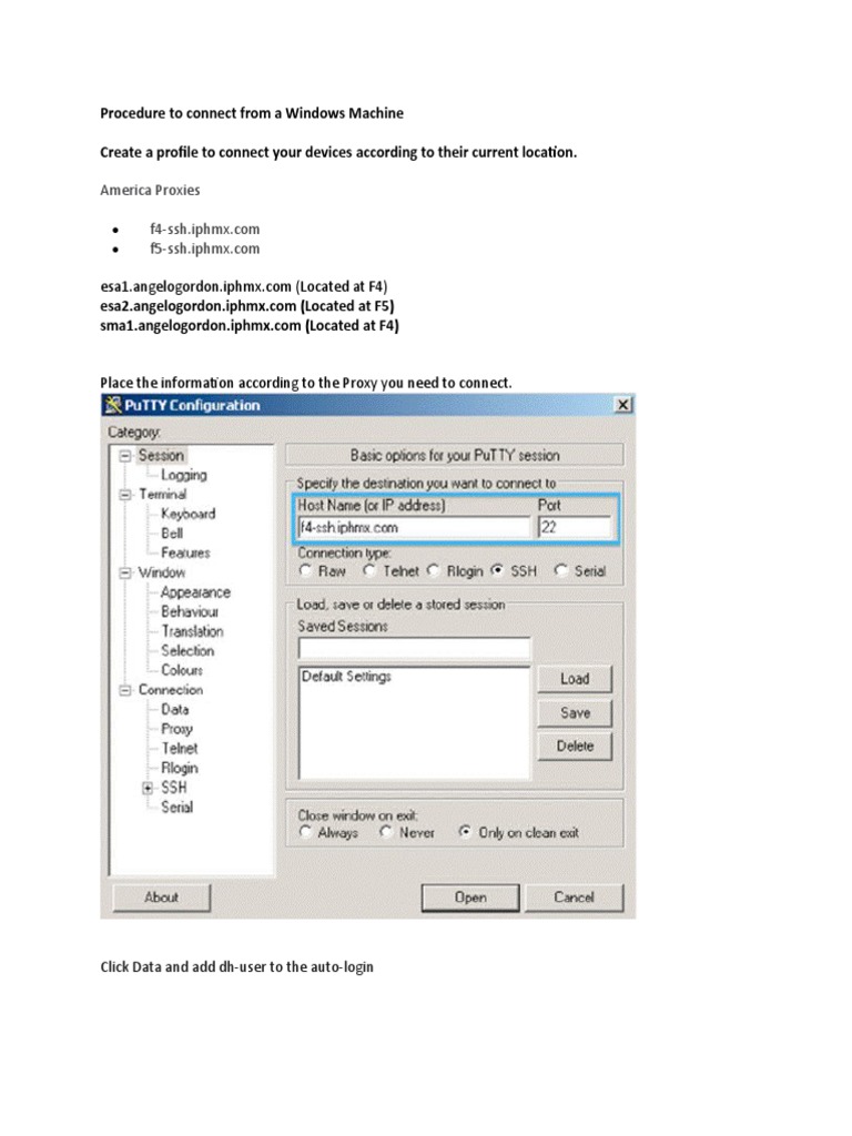 Now you will need to open a new putty window without close the connection to the Proxy server. Use