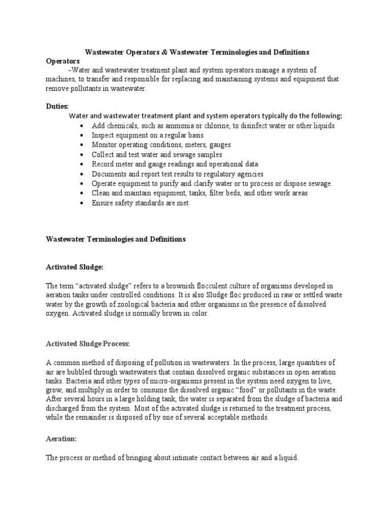 Wastewater Operators & Wastewater Terminologies and Definitions