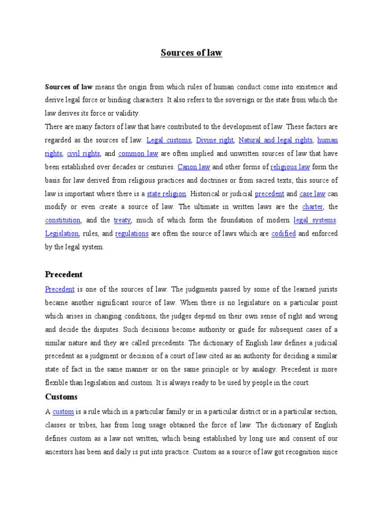 regarded as the sources of law. Legal customs, Divine right, Natural and legal rights, human