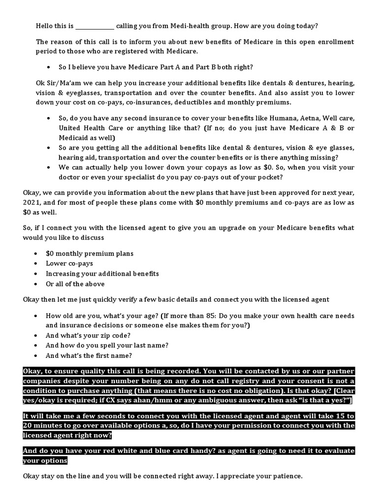 The reason of this call is to inform you about new benefits of Medicare in this open enrollment