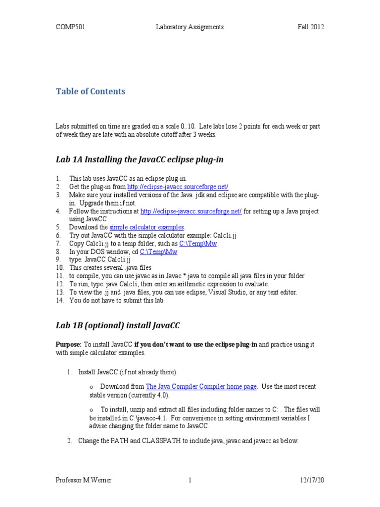 Lab 2 Using JavaCC with actual languages due Oct 5