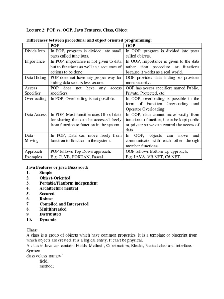 Approach POP follows Top Down approach. OOP follows Bottom Up approach.