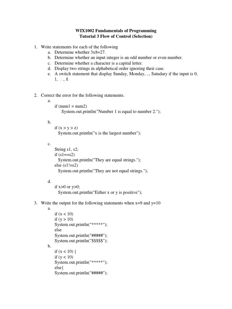 Tutorial 3 Flow of Control (Selection) PDF | PDF | Teaching Methods & Materials | Computers