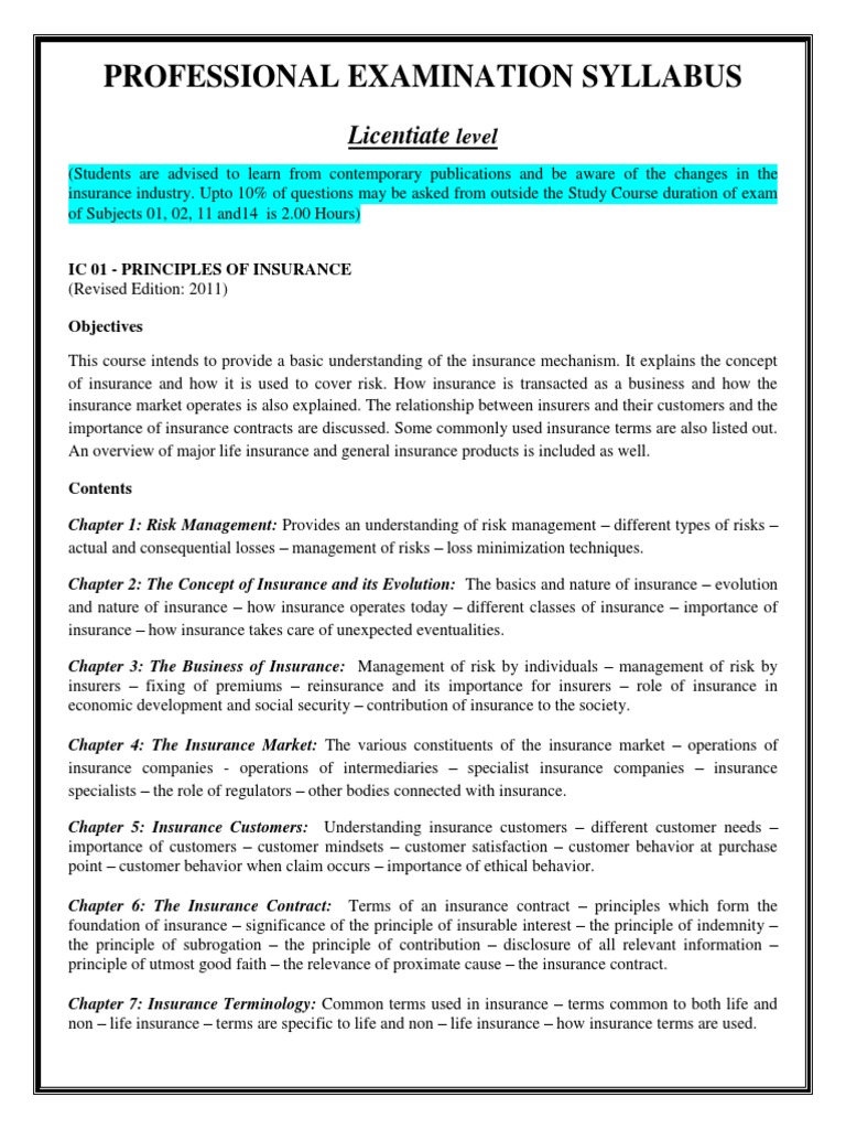insurance industry. Upto 10% of questions may be asked from outside the Study Course duration of exam