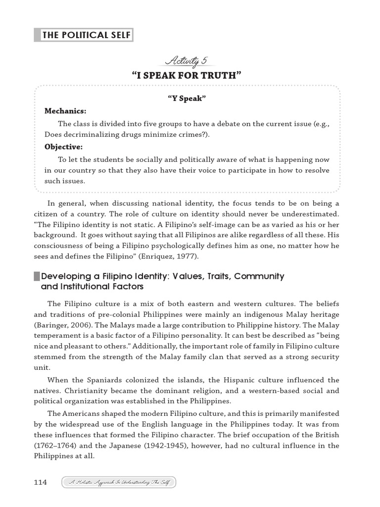 no basic consciousness of our cultural core (Licuanan, 1994). The Filipino colonial