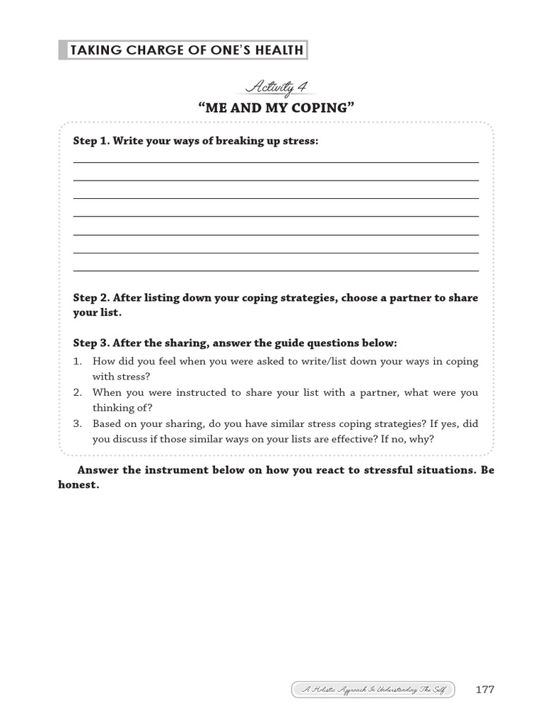 for each item. If there are any other negative ways you do to react to stress, list these at the bottom