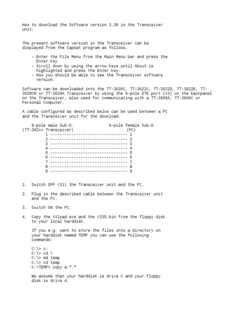 3028CM or TT-3029A Transceiver by using the 9-pole DTE port (X3) on the backpanel