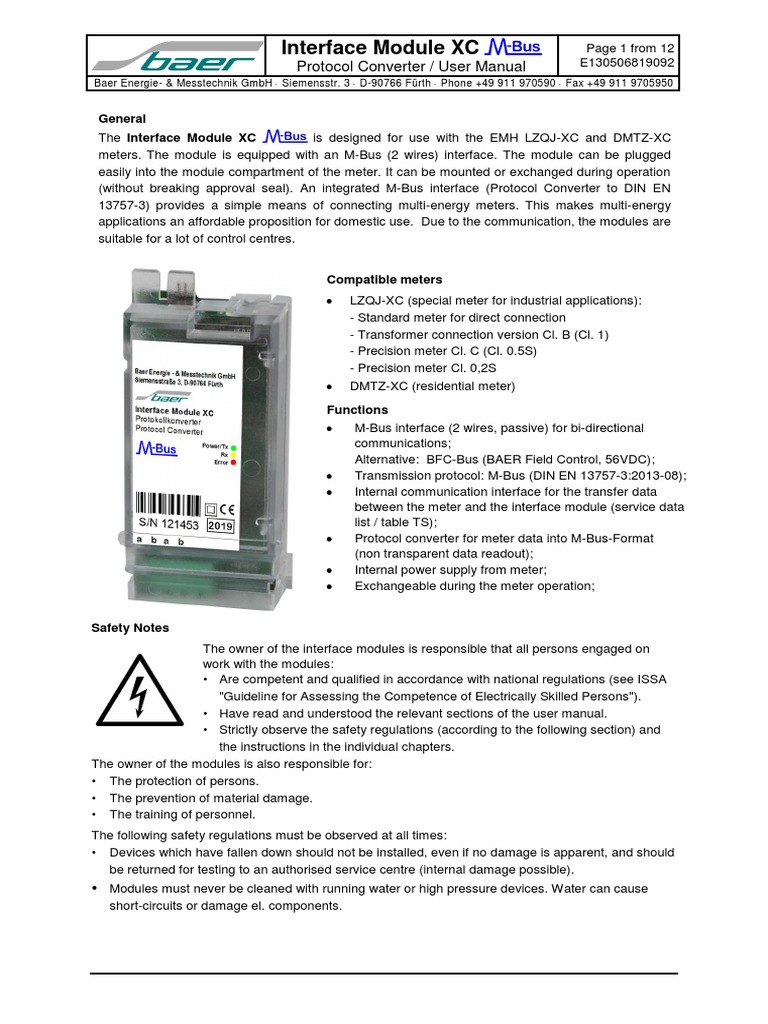The Interface Module XC is designed for use with the EMH LZQJ-XC and DMTZ-XC