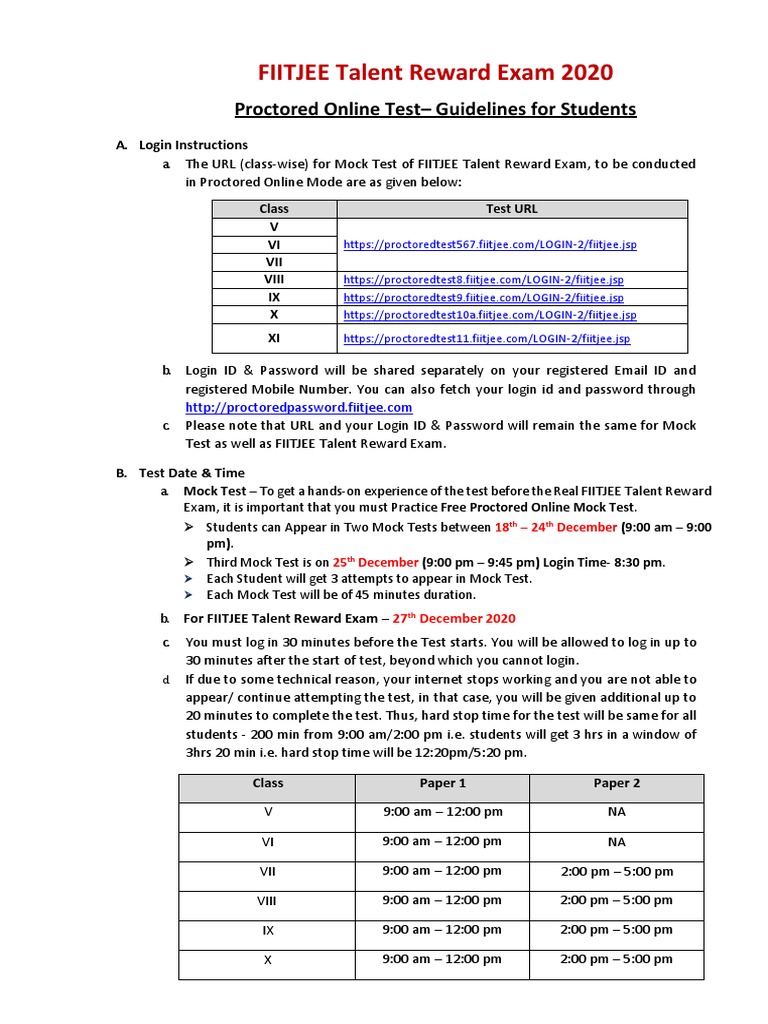 a. Mock Test – To get a hands-on experience of the test before the Real FIITJEE Talent Reward