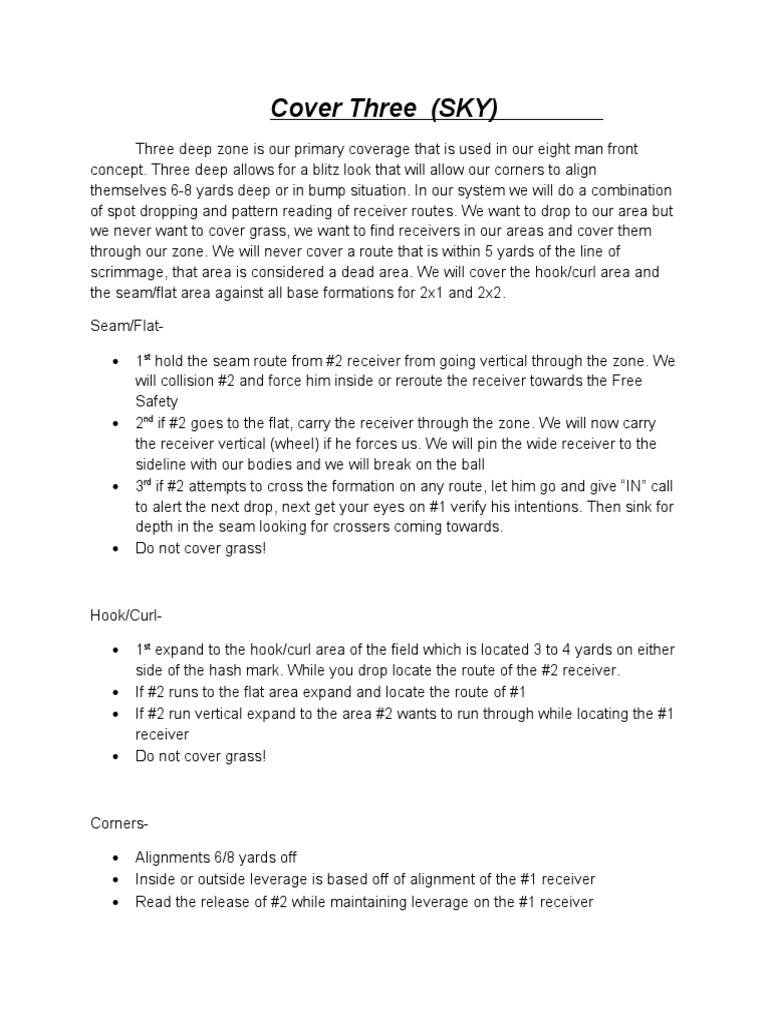 concept. Three deep allows for a blitz look that will allow our corners to align