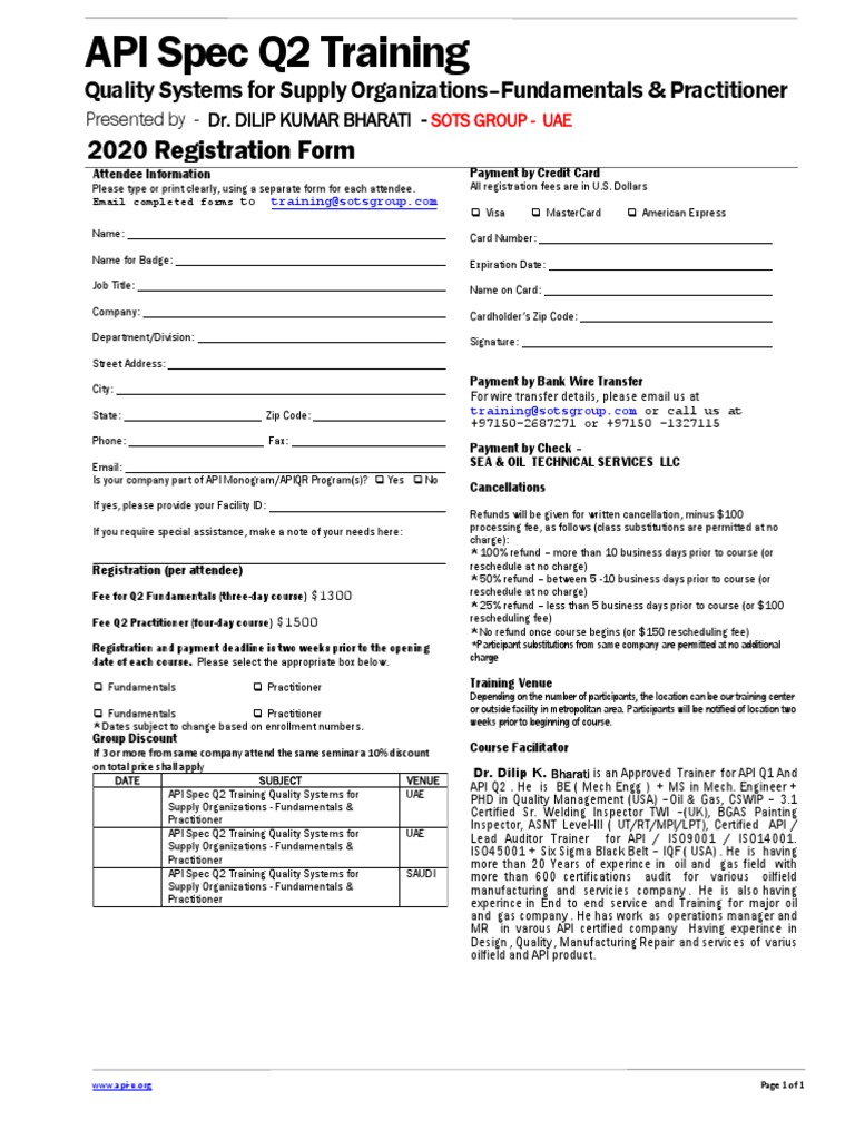 Dr. Dilip K. Bharati is an Approved Trainer for API Q1 And