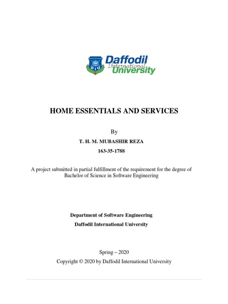 Home Essentials and Services: T. H. M. Mubashir Reza 163-35-1788