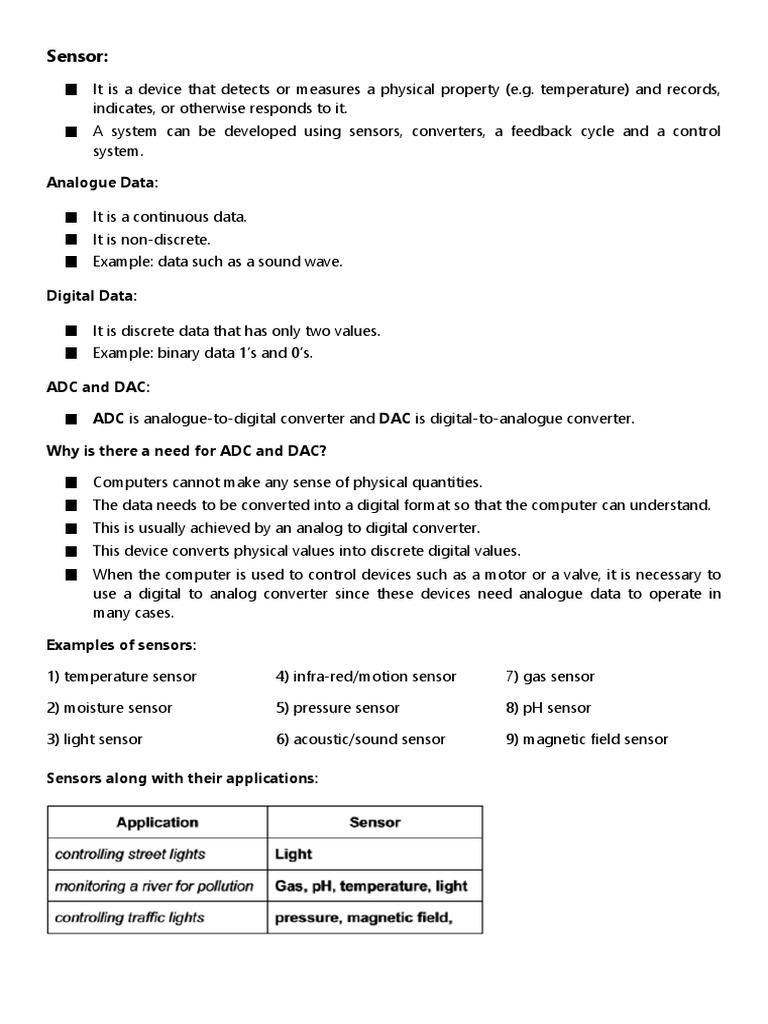 8 complete questions of sensors (worth 5-6 marks) that have been asked in recent years are