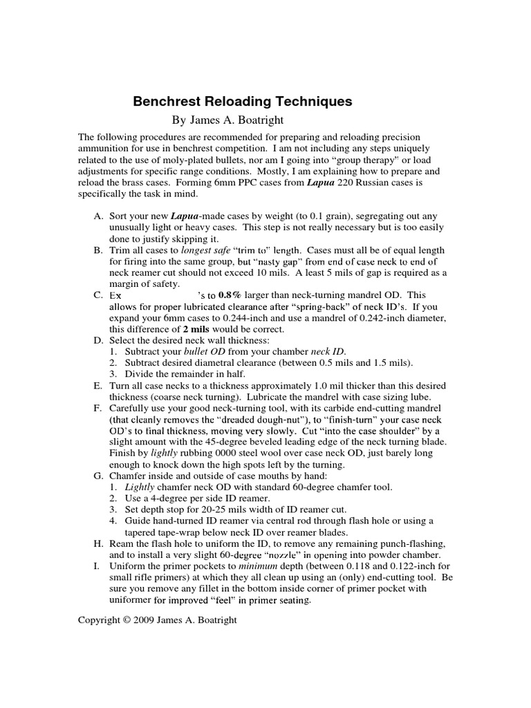 ammunition for use in benchrest competition. I am not including any steps uniquely