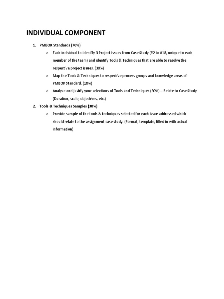 o Analyze and justify your selections of Tools and Techniques (30%) – Relate to Case Study