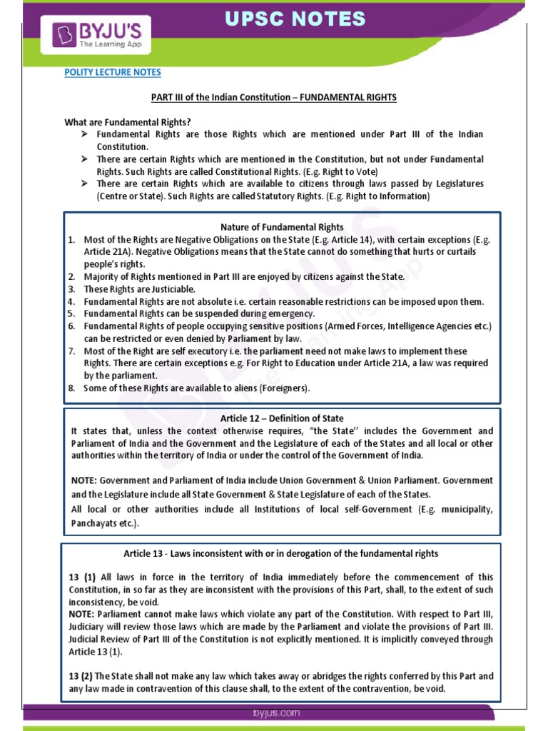 PART III of the Indian Constitution – FUNDAMENTAL RIGHTS