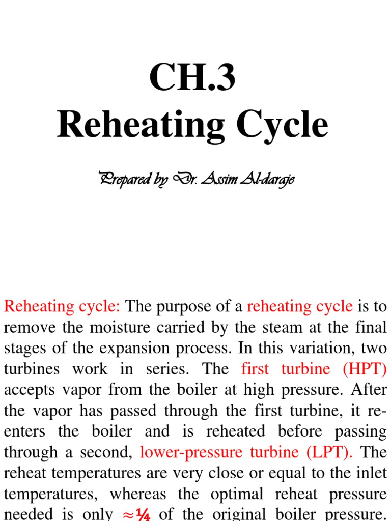 from the first turbine (3-4) is reheated in the boiler at a constant pressure.