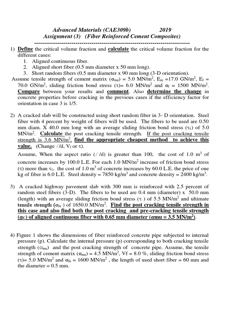 Assignment (3) (Fiber Reinforced Cement Composites)