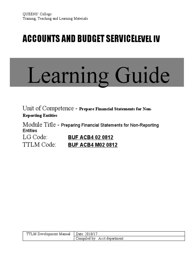 Reporting Entities”. This learner’s guide was prepared to help you achieve the