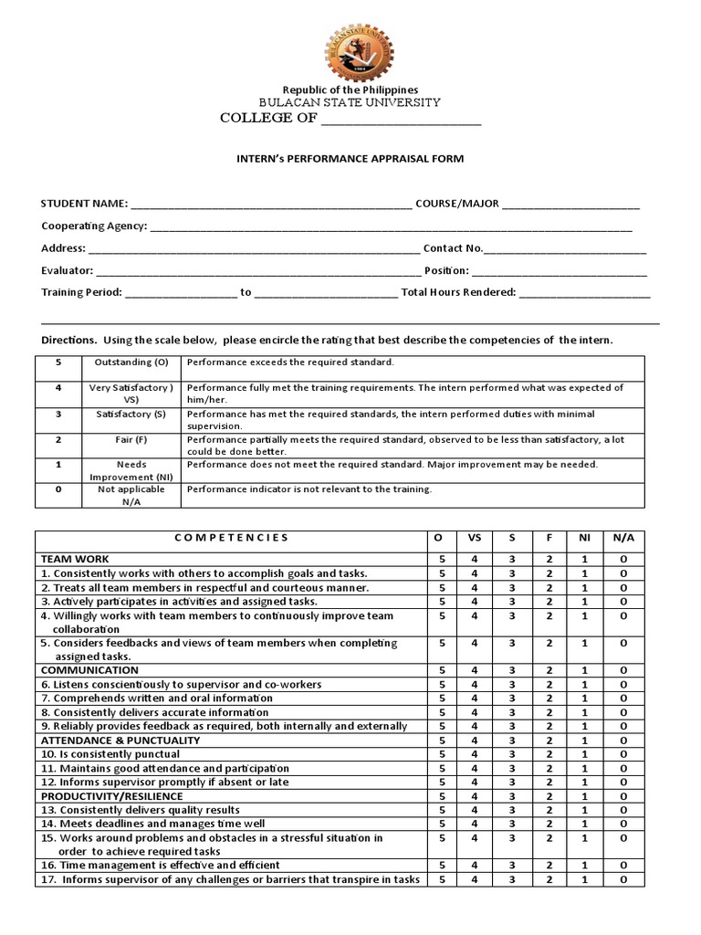 3 Satisfactory (S) Performance has met the required standards, the intern performed duties with minimal