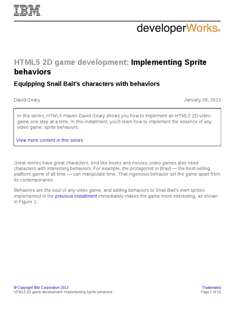 HTML5 2D game development: Implementing Sprite behaviors Page 1 of 16