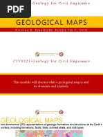 rock units (their strike and dip) and the location of folds or faults that affect the rocks.