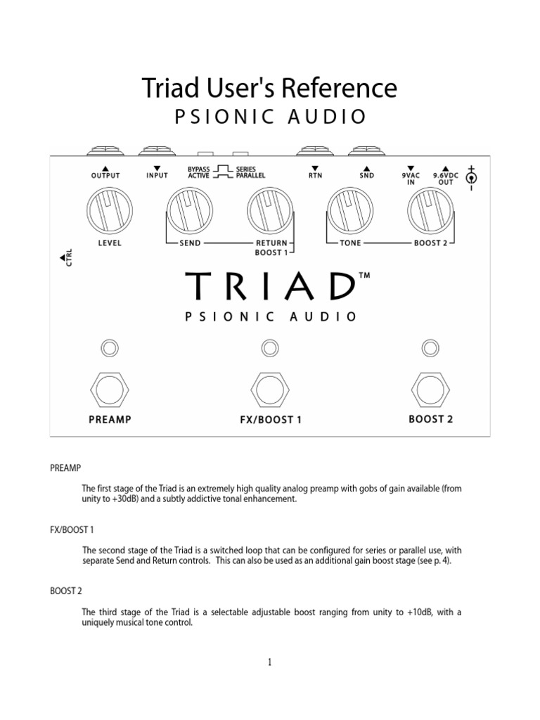 board. Using the Triad FX/Boost 1 stage in parallel allows the player to keep the dry signal analog at all