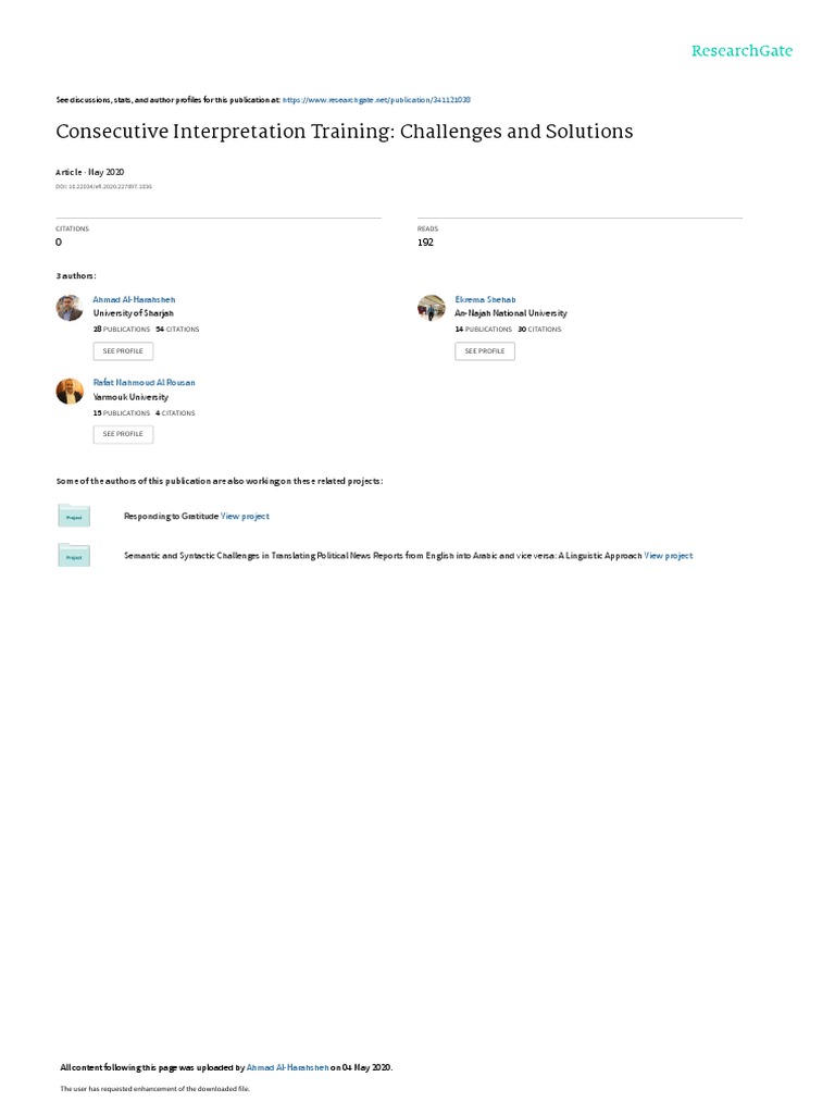 Gile, D.(2009).Basic Concepts and Models for Interpreter and Translator