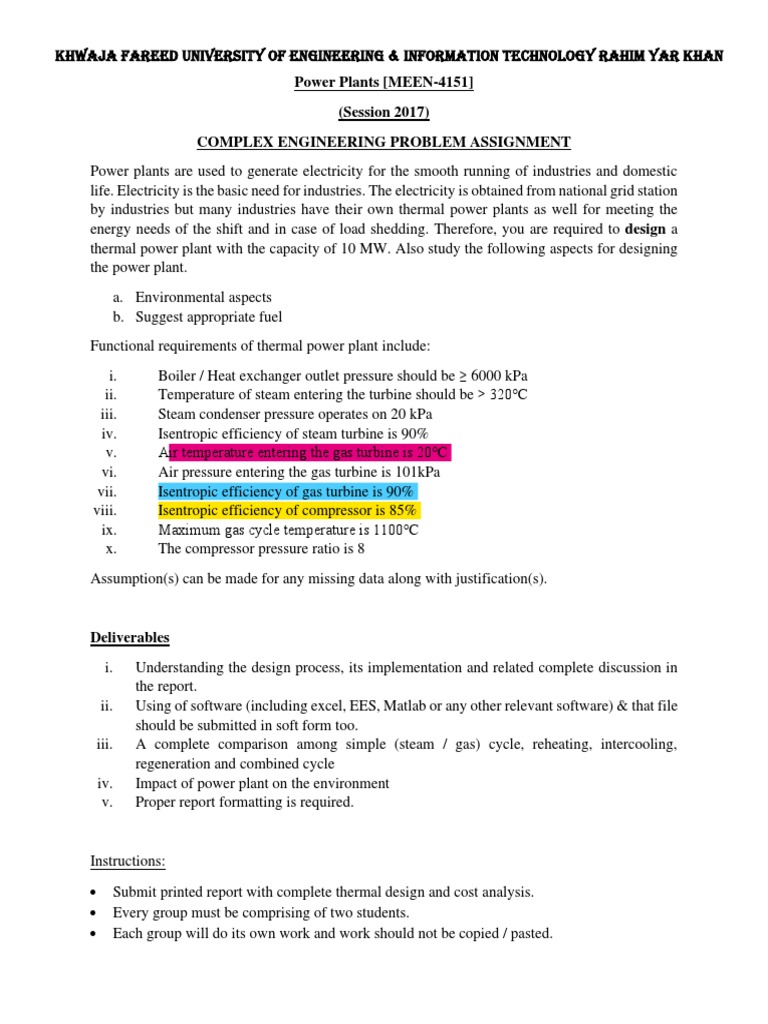 • Submit printed report with complete thermal design and cost analysis.