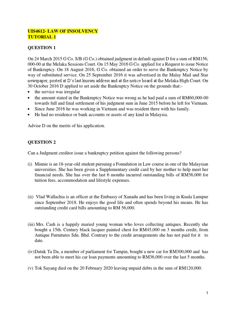 On 24 March 2015 G Co. S/B (G Co.) obtained judgment in default against D for a sum of RM156,
