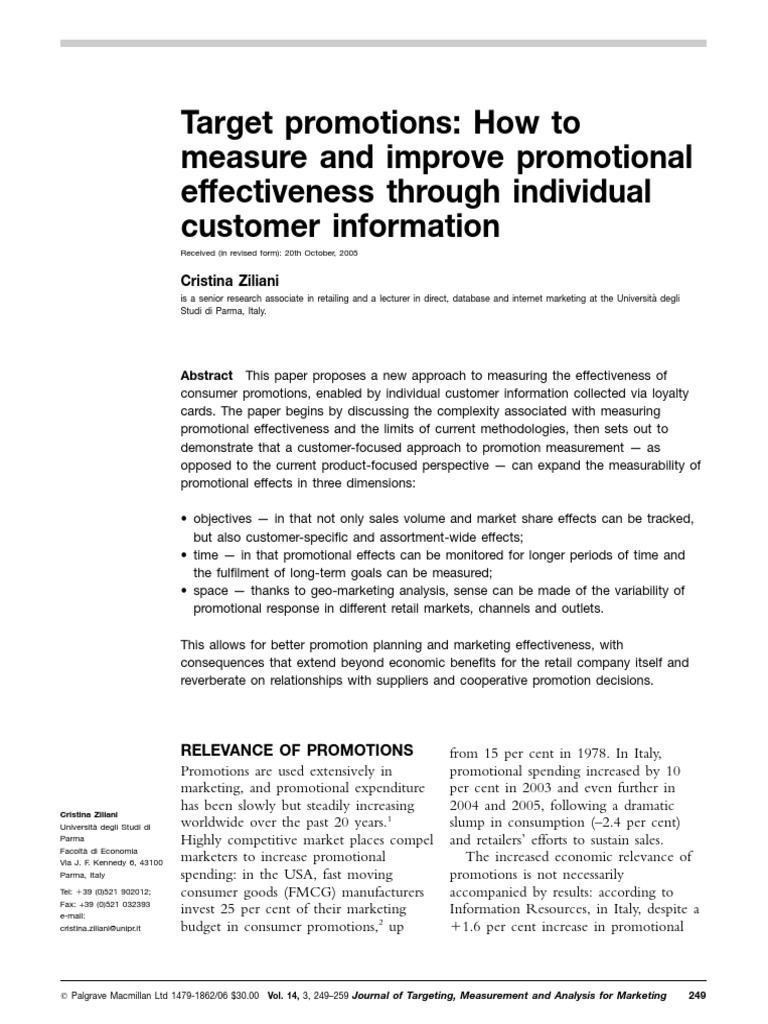 252 Journal of Targeting, Measurement and Analysis for Marketing Vol. 14, 3, 249–259 䉷 Palgrave Macmillan Ltd 1479-1862/06 $30.00