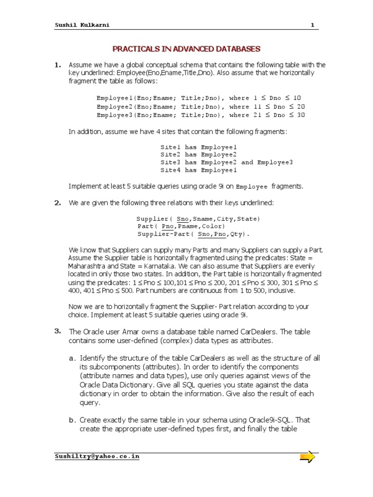 Implement at least 5 suitable queries using oracle 9i on Employee fragments.