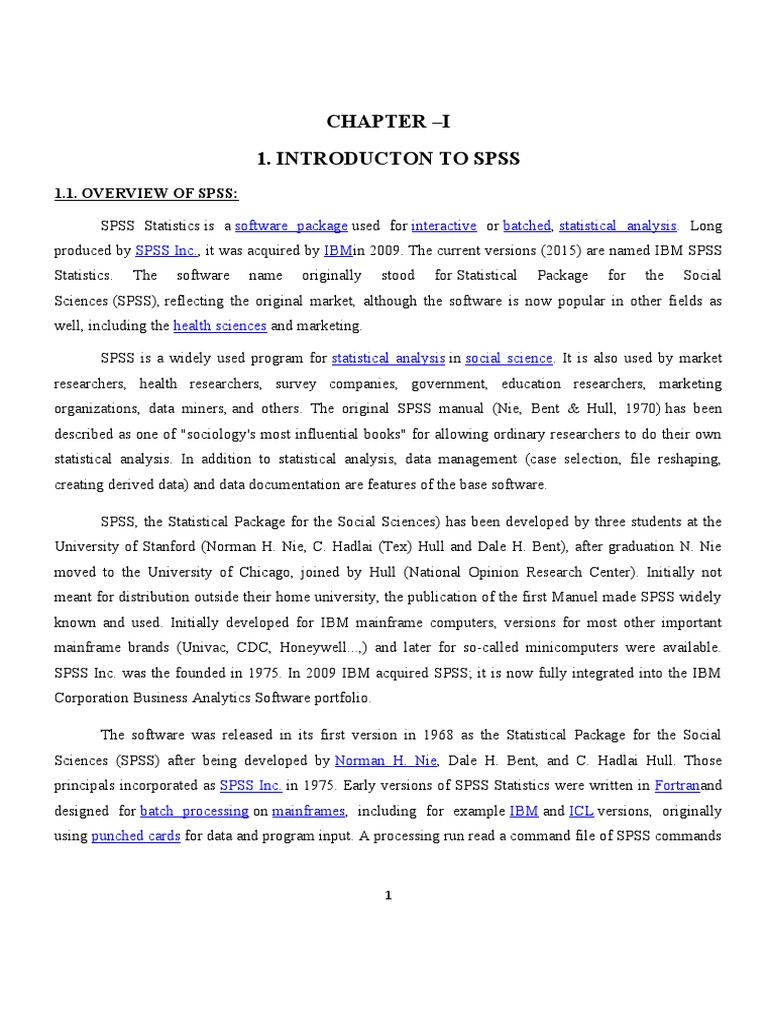 Sciences (SPSS) after being developed by Norman H. Nie, Dale H. Bent, and C. Hadlai Hull. Those