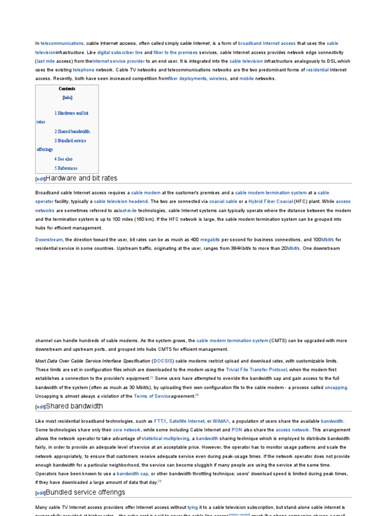 networks wired to the user computer. Internet via Cable networks has Various advantages like High availability, High