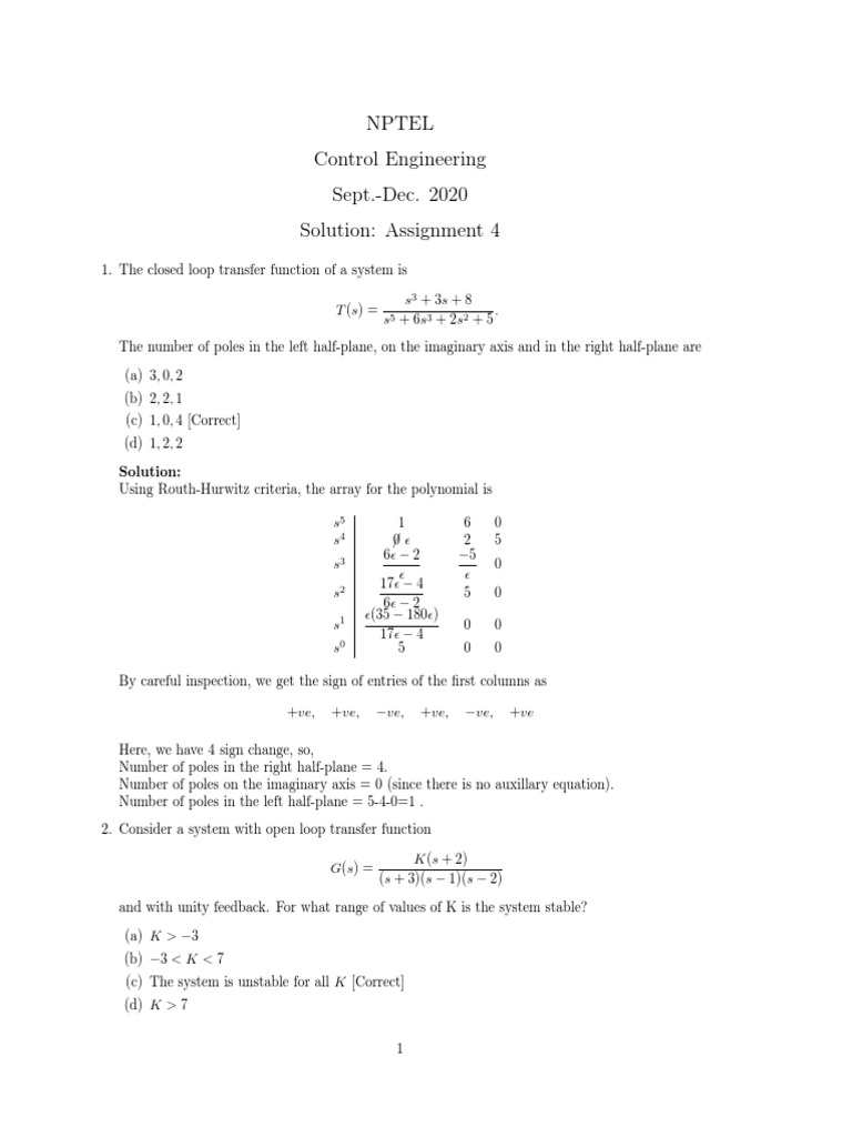 Note: Once we plug back the value of K and verify the RH criteria, we