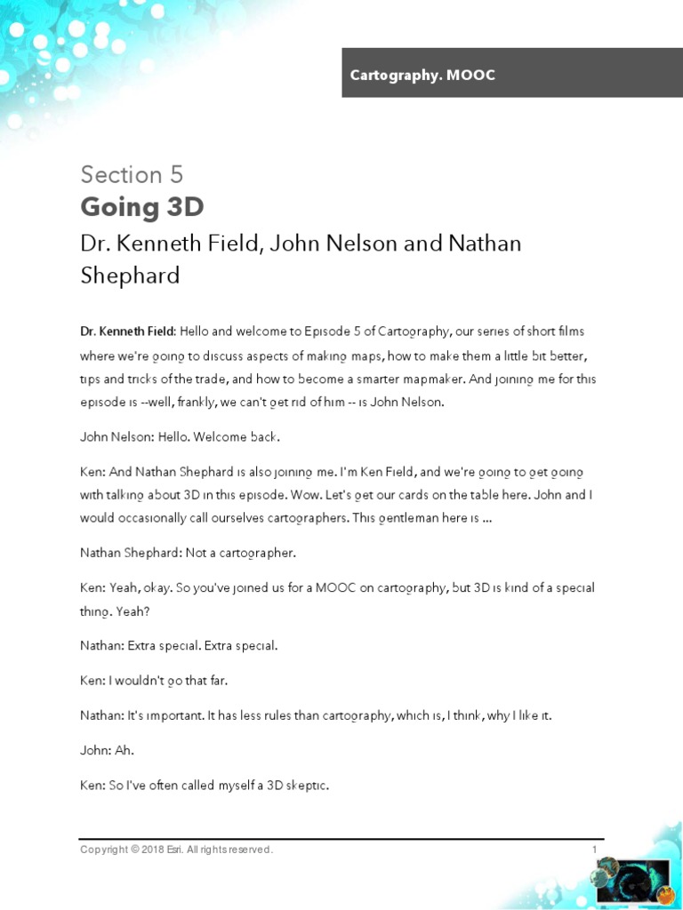 Ken: Yeah, okay. So you've joined us for a MOOC on cartography, but 3D is kind of a special