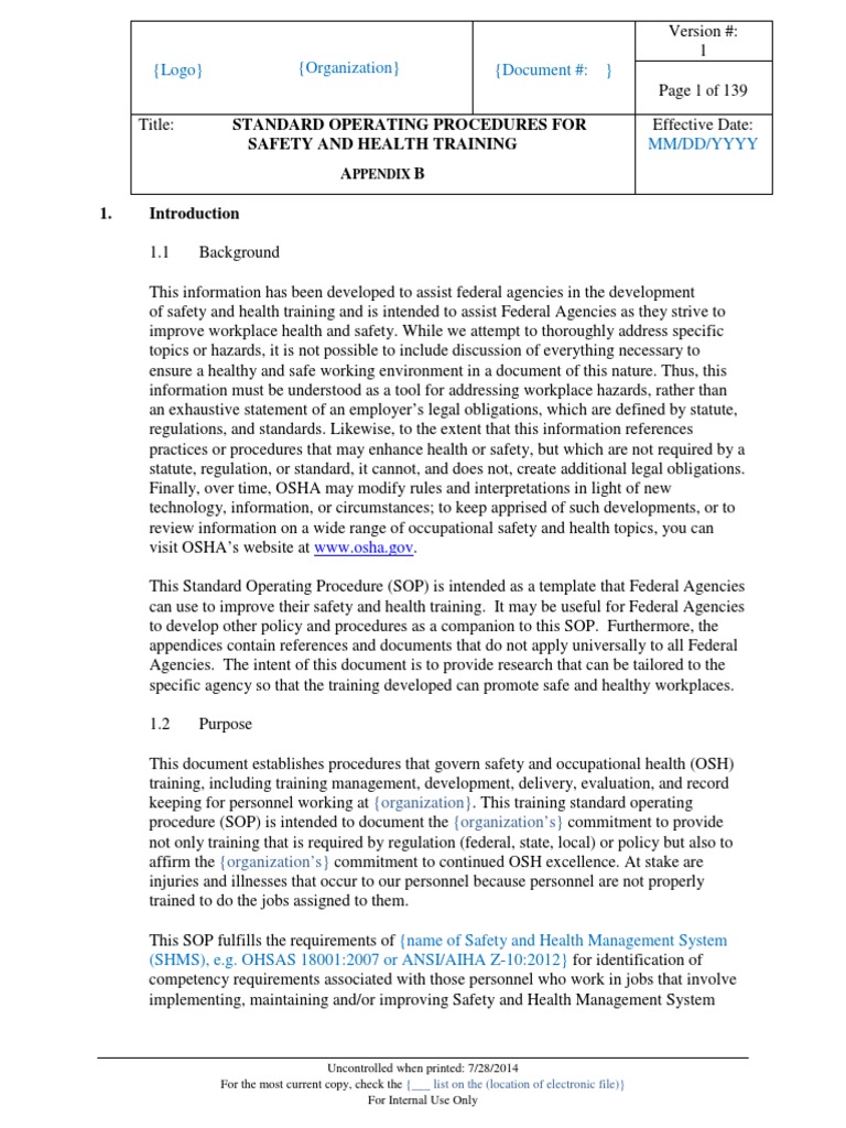 in safety and health training. This SOP also aligns with {other orders or guidelines related